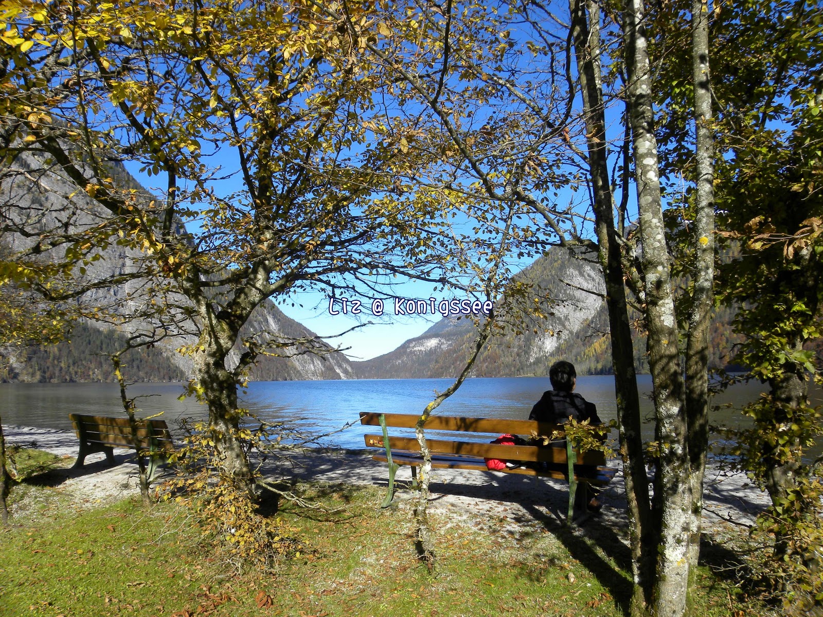 對國王湖的第一印像竟然是路邊賣德國香腸的阿伯。從停車場到國王湖的路上會經過一排紀念品店,其中一攤是賣德國香腸的,很多人聞香而來,當時不知是肚子太餓還是香腸真得好吃,那個香腸的美味是我和Joy念念不忘的。日後每次討論到德國香腸總是會說起那個國王湖的阿伯賣得香腸最好吃。很可惜當時只顧著吃忘了照相。